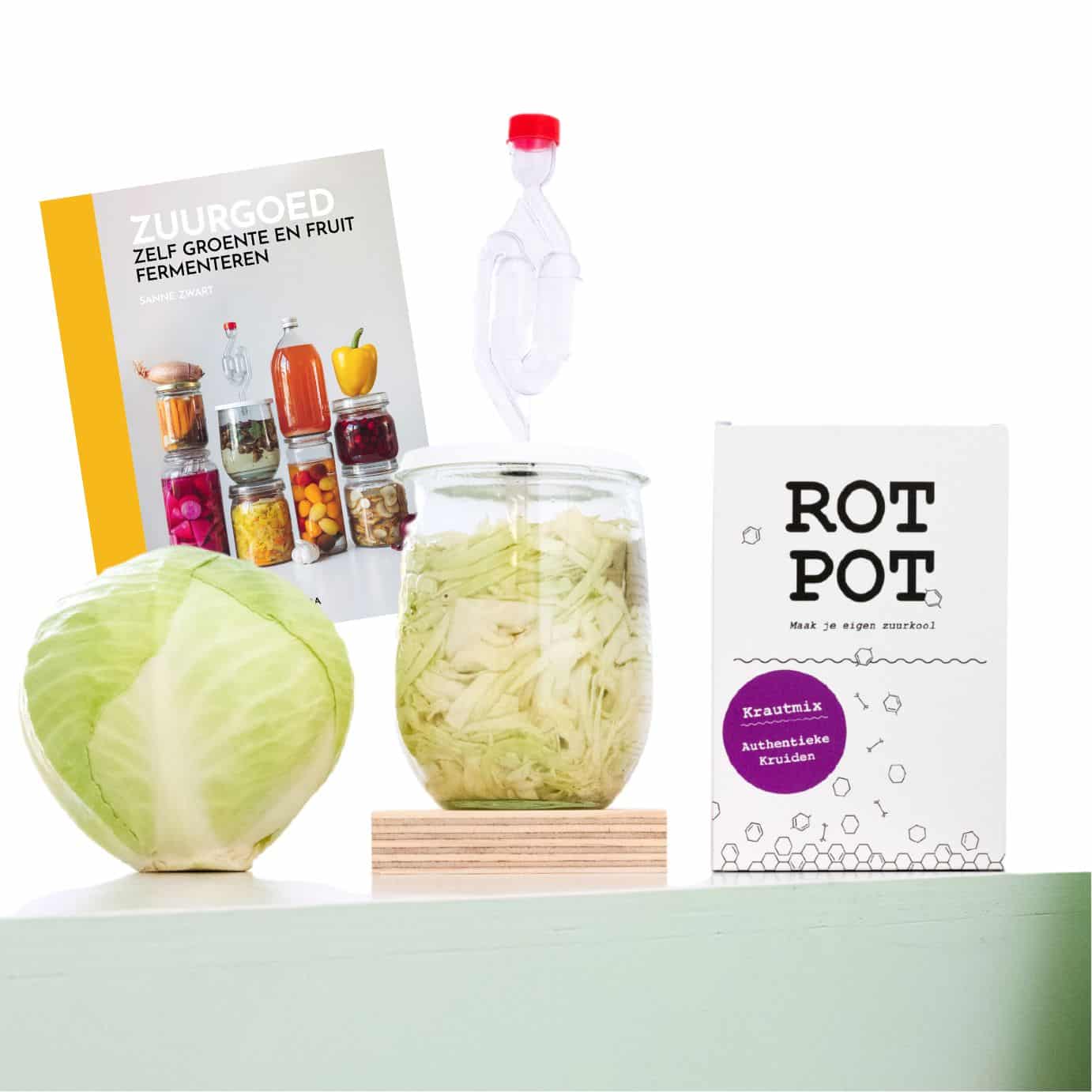Met deze aantrekkelijk geprijsde startset met boek en fermenteerpot maak een perfecte start met leren fermenteren. Bestel deze ideale combinatie van een RotPot naar keuze en het boek Zuurgoed. Zo kun je eindeloos variëren met gefermenteerde groenten en fruit uit je eigen RotPot. Ook een Goed Zuur starterspakket om cadeau te geven.
